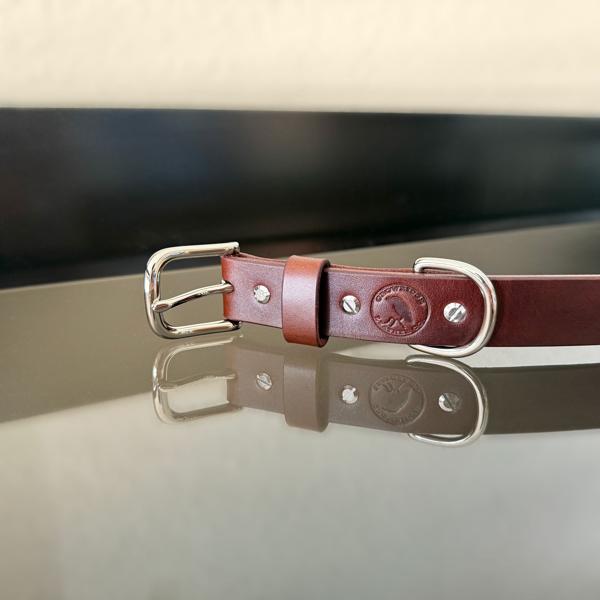 Full-grain leather dog collar, made with 11oz bridle leather sourced in the USA. 1 Inch wide.